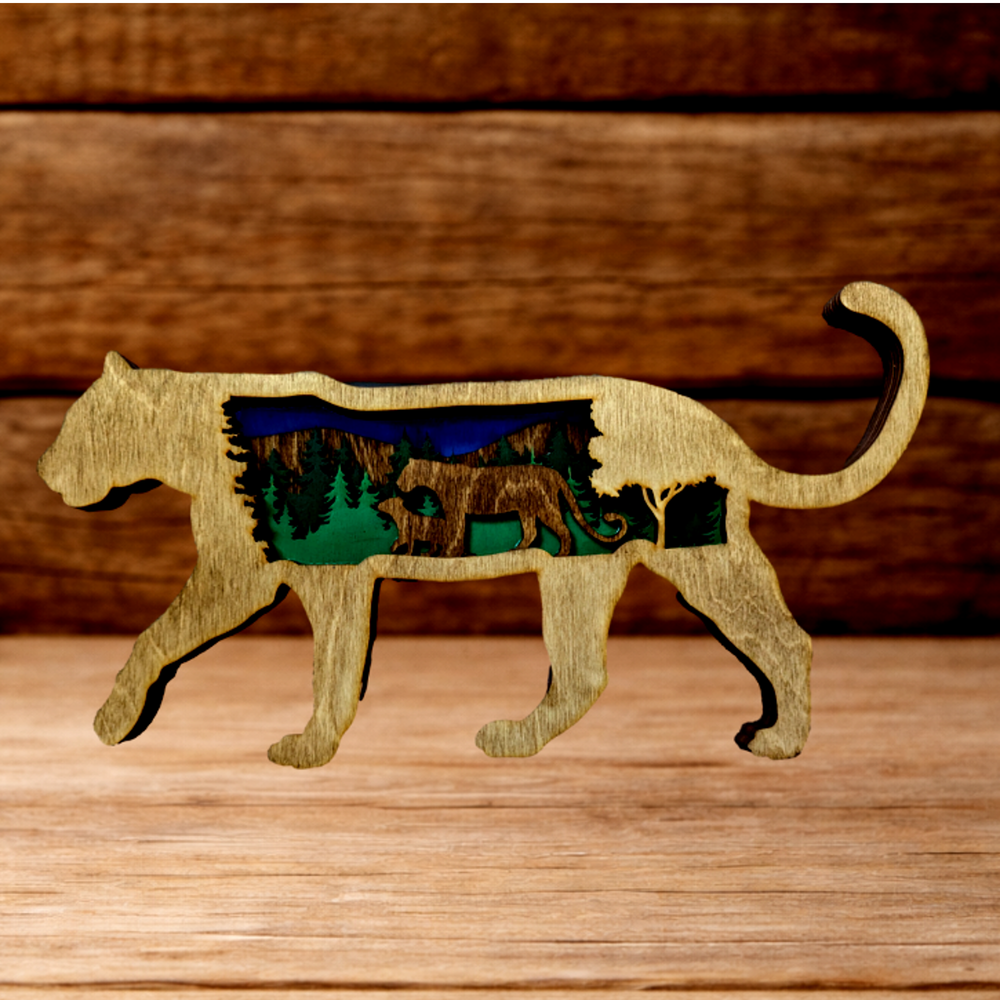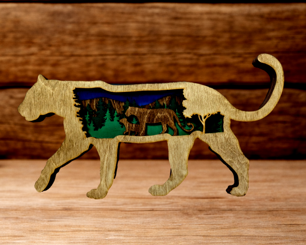 Introducing our stunning Mountain Lion Laser-Cut Wood Wall Art - the ideal complement to any rustic or nature-inspired interior design. With its intricate laser-cutting technique, the artwork features precise detailing and a 3D effect of the mountain lion. The natural wood grain of the piece adds a rustic feel, making it a distinctive and delightful addition to any household. Whether you are an outdoor enthusiast or simply appreciate nature's beauty, this Mountain Lion Laser-Cut Wood Wall Art is certain to captivate. Please note that colors may vary. Size is 12x6 inches.