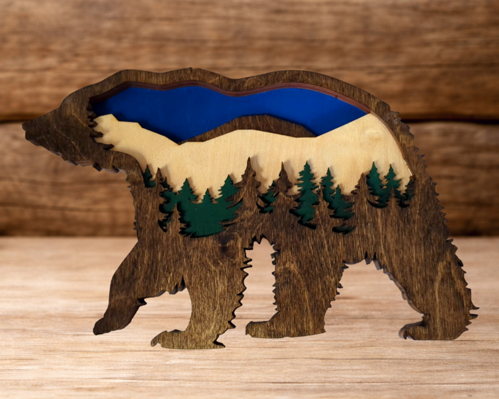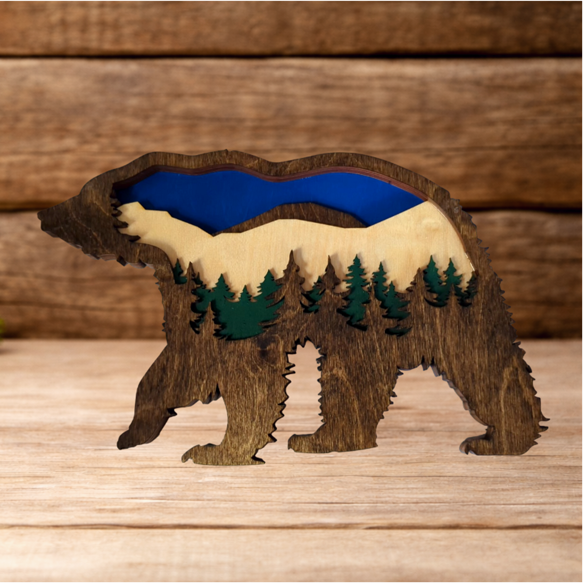 The result? A breathtaking 3D lasered layered bear that will make a delightful addition to any home or space! It's a work of art that showcases the beauty of nature and the craftsmanship of our skilled artisans. Get ready to be amazed by this wooden wonder!